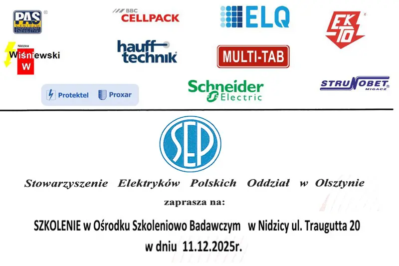Uprzejmie informujemy, że Stowarzyszenie Elektryków Polskich organizuje szkolenie dla członków Warmińsko-Mazurskiej Okręgowej Izby Inżynierów Budownictwa z branży elektrycznej i pokrewnych.